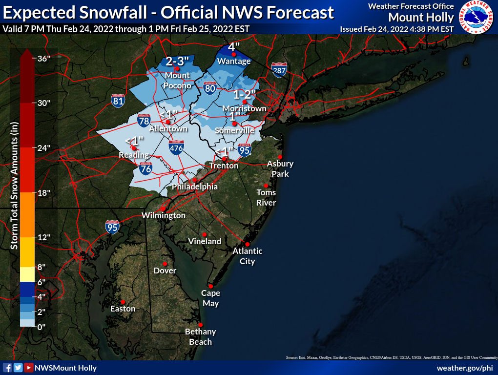 Philadelphia/Mt Holly - National Weather Service US Dept of Commerce National Oceanic and Atmospheric Administration National Weather Service Philadelphia/Mt Holly 732 Woodlane Rd. Mount Holly, NJ 08060 Newark, New Jersey 7 Day Weather Forecast - The Weather ... Rain: ~1 mm. Partly sunny in the morning with a chance of a shower developing in the afternoon. POP 40%. Rain: trace. Tonight 6pm - 6am. 4°C. 39°F. Rain ending in the evening, partly cloudy ...