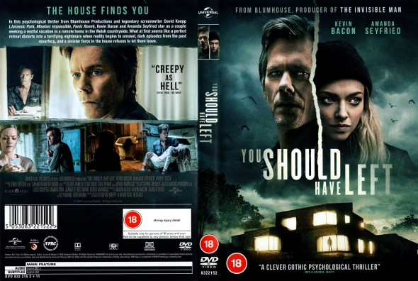 › title › tt8201852You Should Have Left (2020) - You Should Have Left (2020 ... You Should Have Left (3 out of 5 stars). You Should Have Left is a fair psychological horror film about a couple who rents a house in a foreign country to get away from there daily lives. Amanda Seyfrieds character is an actress. Kevin Bacon is her husband who has that mysterious past that he is trying to hide from. Тебе стоило уйти (2020) — Фильм.ру Детектив, ужасы. Режиссер: Дэвид Кепп. В ролях: Аманда Сайфред, Кевин Бейкон, Джефф Белл и др. В центре сюжета — банкир на пенсии Тэо Конрой, который женат на знаменитой молодой актрисе.