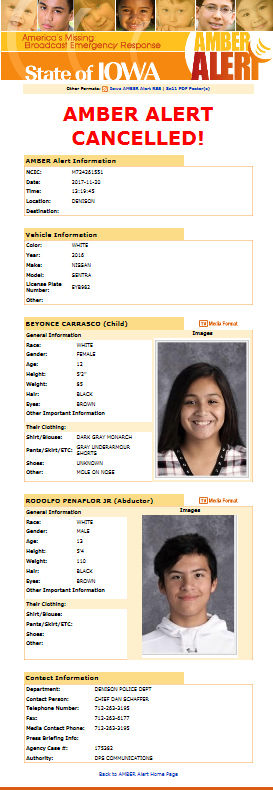 Amber Alert issued for three missing children from Utah ... An Amber Alert was issued on Wednesday evening for three missing Utah children who may be with their mother in South Dakota. According to police, the incident is being investigated as a custodial abduction by the mother of the three children, Conchita Leona Peralta, who does not have legal custody over them. Amber Alert canceled; Arkansas teen found safe This Amber Alert began when Case left work at approximately 9:15 p.m. Monday. According to Tuesday's news release, she and a coworker were walking to their vehicles parked a block away when an ... › 2022/04/04 › amber-alert-2-children-taken-wyoming-suspectAmber Alert canceled for 2 children taken from Wyoming ... Apr 04, 2022 · BUFFALO, Wyo. (Gray News) - Authorities in Wyoming canceled an Amber Alert for two young daughters who they say were taken by their non-custodial mother after they were found safe in Texas Wyoming ... Home | AMBER Alert AMBER Alert: Years of Progress in Recovering Abducted Children Today, the AMBER Alert system is being used in all 50 states, the District of Columbia, Indian country, Puerto Rico, the U.S. Virgin Islands, and internationally in 31 countries. As of December 31, 2021, 1,111 children have been successfully recovered through the AMBER Alert system.